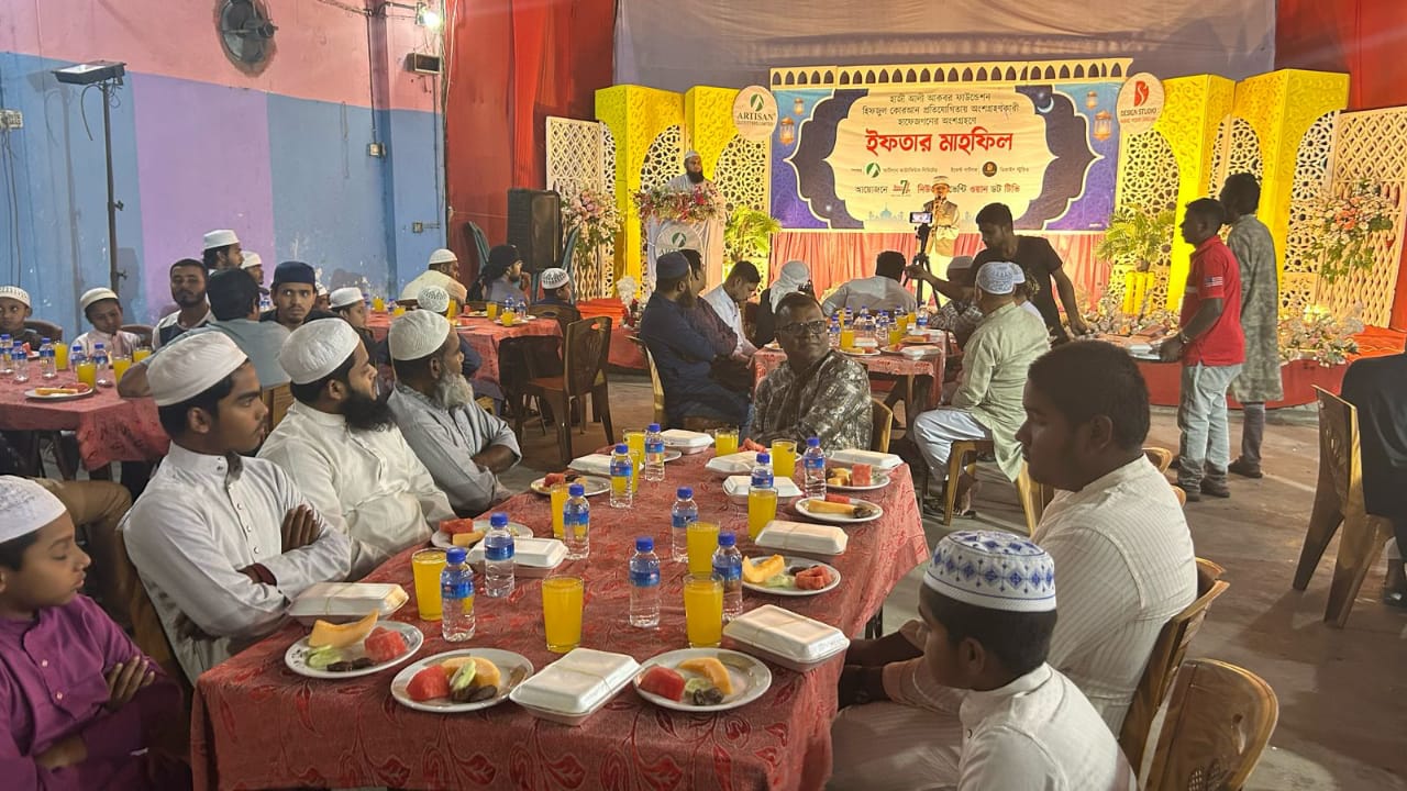 ইফতার মাহফিলে শুরুতে ইসলামী সংগীত পরিবেশন করেন সুরের আলো সংগঠন।
