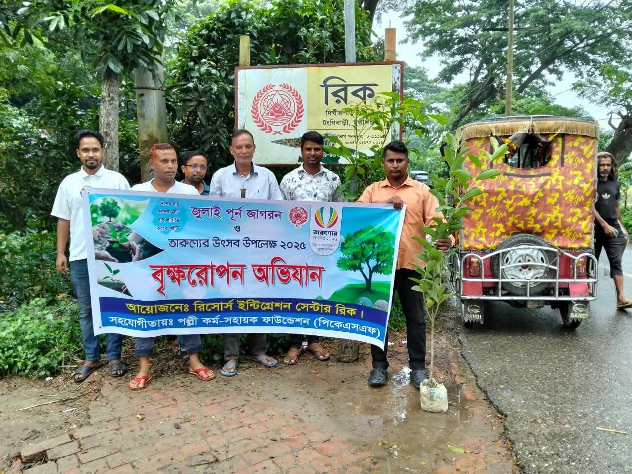 আপন সরদার টঙ্গীবাড়ী প্রতিনিধি: জুলাই পুনর্জাগরণ ও তারন্যের উৎসব ২০২৫ উপলক্ষে মুন্সীগঞ্জের টঙ্গীবাড়ীতে বৃক্ষরোপণ কর্মসূচি পালন করেছে রিসোর্স ইন্টিগ্রেশন সেন্টার রিক। বৃহস্পতিবার ৭আগস্ট) দুপুর ২ টায় পল্লী কর্ম-সহায়ক ফাউন্ডেশন (পিকেএসএফ) এর সহযোগিতায় রিসোর্স ইন্টিগ্রেশন সেন্টার (রিক) এর আয়োজনে দিঘিরপাড়-সিপাহিপাড়া রাস্তার পুরা বাজার সংলগ্ন এলাকায় বিভিন্ন ধরনের ফলজ ও ঔষধি গাছ লাগানো হয়। এ সময় উপস্থিত ছিলেন রিসোর্স ইন্টিগ্রেশন সেন্টার (রিক) এর দিঘিরপাড় শাখার ম্যানেজার মো: রবিউল ইসলাম, অফিসের সমৃদ্ধি প্রকল্প কর্মকর্তা শুভ, হিসাব রক্ষক বাসুদেব রায়, সহকর্মী নিহাশ মল্লিক,মনিরুল ইসলাম প্রমুখ।