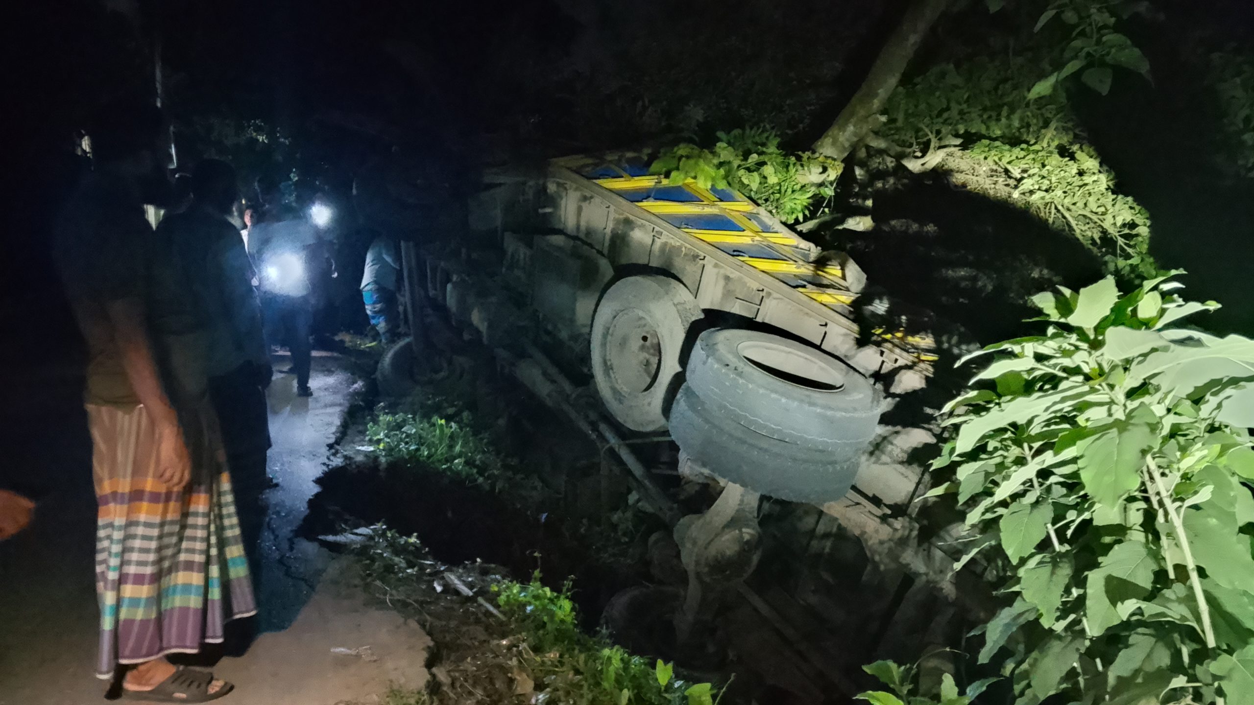 ট্রাকচালক সোহাগ মিয়া(২৬) জানান, সিদ্ধেশ্বরী কোল্ড স্টোরেজ থেকে ১৫টন আলু চট্রগ্রামে আড়তে নিয়ে বিক্রির উদ্দেশ্যে রওনা হই। পরে মটুকপুর মসজিদের সামনে আসলে রাস্তা ভাঙা হওয়ায় ট্রাকের চাকা ভাঙার ভিতর পরে গেলে সাথে সাথে গাড়ি খাদে পরে যায়। গাড়ির ক্ষয়ক্ষতি হয়েছে এছাড়াও হতাহতের ঘটনা ঘটেনি।