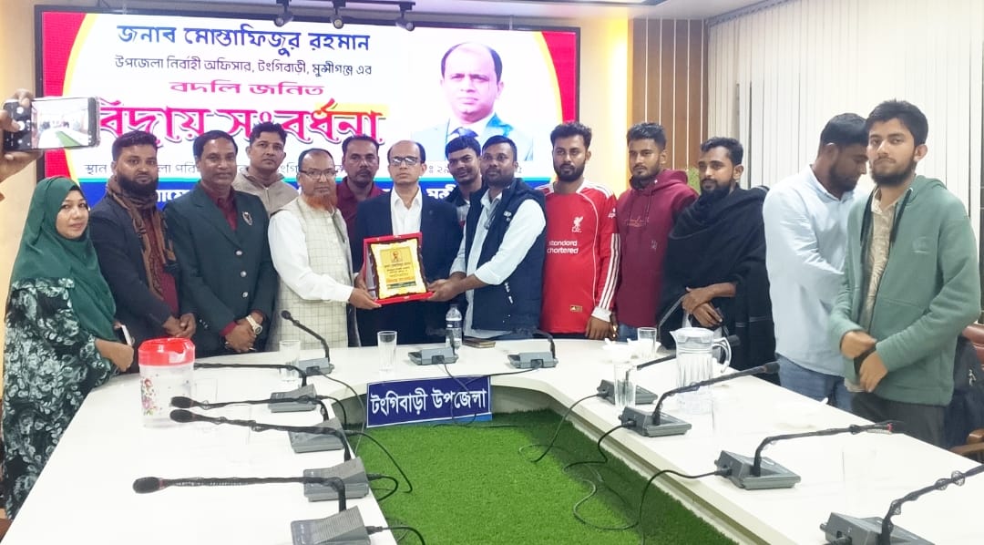 পরে টঙ্গীবাড়ী প্রেসক্লাবের পক্ষ থেকে বিদায়ী ইউএনওর হাতে সম্মাননা স্মারক তুলে দেওয়া হয়।