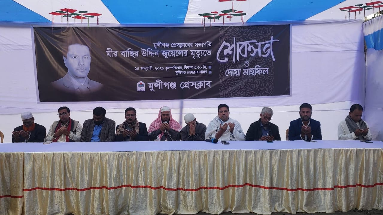 মুন্সীগঞ্জ প্রেসক্লাবের আয়োজনে বৃহস্পতিবার (১৩ ই জানুয়ারি) বিকালে প্রেসক্লাব প্রাঙ্গণে এ শোকসভা ও দোয়া অনুষ্ঠিত হয়।