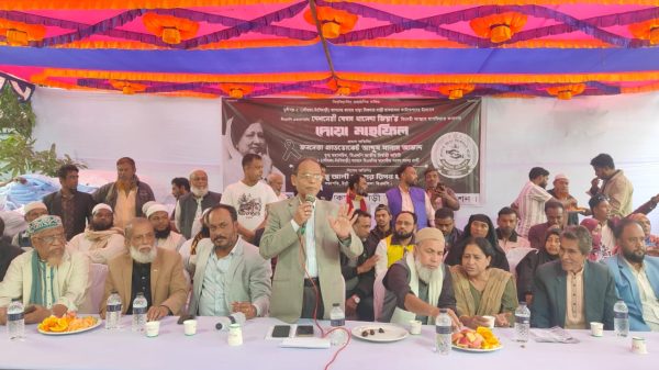 টঙ্গীবাড়ী প্রতিনিধি:বিএনপির প্রয়াত চেয়ারপার্সন ও সাবেক প্রধানমন্ত্রী বেগম খালেদা জিয়ার রূহের মাগফিরাত কামনায় মুন্সীগঞ্জের টঙ্গীবাড়িতে দোয়া মাহফিল অনুষ্ঠিত হয়েছে। রবিবার বিকেলে উপজেলার কামারখাড়া ইউনিয়ন বিএনপি ও অঙ্গসংগঠনের আয়োজনে ভাঙ্গনিয়া গ্রামে এ দোয়া মাহফিলের আয়োজন করা হয়। ইউনিয়ন বিএনপির সহ-সভাপতি মো. হাসানুজ্জামান শান্ত মাদবরের সভাপতিত্বে প্রধান অতিথি হিসেবে উপস্থিত ছিলেন মুন্সীগঞ্জ-২ আসনের বিএনপি মনোনীত প্রার্থী ও বিএনপির কেন্দ্রীয় কমিটির যুগ্ম মহাসচিব অ্যাডভোকেট আব্দুস সালাম আজাদ। বিশেষ অতিথি হিসেবে উপস্থিত ছিলেন উপজেলা বিএনপি সভাপতি আলী আজগর রিপন মল্লিক, সাংগঠনিক সম্পাদক অ্যাডভোকেট আসাদুজ্জামান ইকো, ইউনিয়ন বিএনপি সভাপতি শেখ মো. জামাল, সাধারণ সম্পাদক হাজী হুমায়ন কবির, ইউনিয়ন যুবদলের যুগ্ম সাধারণ সম্পাদক রুবেল ঢালী। প্রয়াত সাবেক প্রধানমন্ত্রী বেগম খালেদা জিয়ার রূহের মাগফিরাত কামনা করে বিশেষ মোনাজাত ও তোবারক বিতরণ করা হয়। অনুষ্ঠানে সার্বিক সহযোগিতা করেন উপজেলা বিএনপি যুগ্ম-সাধারণ সম্পাদক সাইফুল মাদবর চঞ্চল।