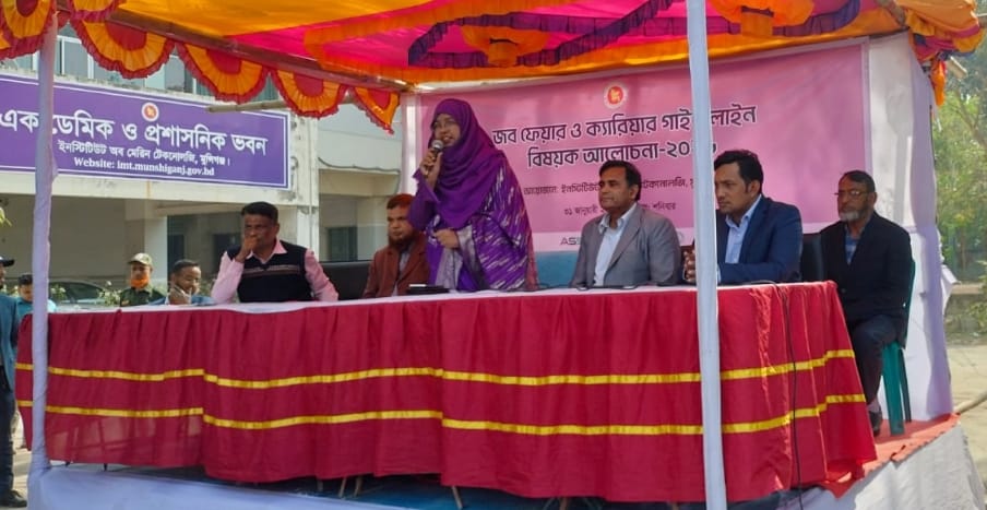 মুন্সিগঞ্জের টঙ্গিবাড়িতে অবস্থিত ইন্সটিটিউট অব মেরিন টেকনোলজি (আইএমটি) প্রাঙ্গণে গতকাল ৩১ জানুয়ারি (শনিবার) দিনব্যাপী বর্ণাঢ্য চাকরি মেলা ও ক্যারিয়ার গাইডলাইন বিষয়ক সেমিনার অনুষ্ঠিত হয়েছে। দক্ষ জনশক্তি তৈড়ি এবং কর্মসংস্থানের সুযোগ সৃষ্টির লক্ষ্যে আয়োজিত এই মেলায় চাকরিপ্রার্থীদের উপচে পড়া ভিড় ও ব্যাপক উৎসাহ-উদ্দীপনা লক্ষ্য করা গেছে। সেমিনারে প্রধান অতিথি হিসেবে উপস্থিত ছিলেন মুন্সিগঞ্জের জেলা প্রশাসক সৈয়দা নুর মহল আশরাফী। বিশেষ অতিথি হিসেবে উপস্থিত থেকে চাকরিপ্রার্থীদের উদ্দেশ্যে দিকনির্দেশনামূলক বক্তব্য প্রদান করেন টঙ্গিবাড়ি উপজেলা নির্বাহী অফিসার (ইউএনও) সুরাইয়া মমতাজ। অনুষ্ঠানে সভাপতিত্ব করেন ইন্সটিটিউটের অধ্যক্ষ প্রকৌশলী জাহাঙ্গীর আলম। এবারের মেলায় দেশের স্বনামধন্য মোট ৭টি কোম্পানি অংশগ্রহণ করে। মেলা চলাকালীন চাকরিপ্রার্থীরা বিভিন্ন কোম্পানির স্টলে গিয়ে তাদের জীবনবৃত্তান্ত (সিভি) জমা দেওয়ার সুযোগ পান। অংশগ্রহণকারী প্রতিষ্ঠানগুলো সরাসরি প্রার্থীদের সাথে কথা বলে এবং প্রাথমিক বাছাই প্রক্রিয়া সম্পন্ন করে। ক্যারিয়ার গাইডলাইন বিষয়ক সেমিনারে বক্তারা বর্তমান সময়ের প্রতিযোগিতামূলক চাকরির বাজারে নিজেদের যোগ্য করে গড়ে তোলার ওপর গুরুত্বারোপ করেন। প্রধান অতিথি তার বক্তব্যে বলেন, "কারিগরি শিক্ষার প্রসারে এ ধরনের মেলা তরুণদের মাঝে নতুন আশার আলো সঞ্চার করবে।" বিশেষ অতিথি সুরাইয়া মমতাজ চাকরিপ্রার্থীদের আত্মবিশ্বাস ও দক্ষতা বৃদ্ধির পরামর্শ দেন। অনুষ্ঠানে আরও উপস্থিত ছিলেন টঙ্গিবাড়ি পল্লী বিদ্যুৎ সমিতির ডিজিএম, ইন্সটিটিউটের বিভিন্ন স্তরের কর্মকর্তাবৃন্দ, স্থানীয় সাংবাদিক ও মিডিয়া কর্মীবৃন্দ। এছাড়াও টঙ্গিবাড়ি উপজেলার বিভিন্ন স্কুল-কলেজের প্রধানগণ এবং সরকারি দপ্তরের কর্মকর্তাবৃন্দ মেলায় উপস্থিত থেকে শিক্ষার্থীদের উৎসাহিত করেন। দিনব্যাপী চলা এই আয়োজনে আগত তরুণ-তরুণীরা জানান, নিজ প্রাঙ্গণে এ ধরনের চাকরি মেলার আয়োজন তাদের ক্যারিয়ার গঠনে বড় ভূমিকা রাখবে। তারা নিয়মিত বিরতিতে এ ধরণের ক্যারিয়ার সেমিনার আয়োজনের দাবি জানান।